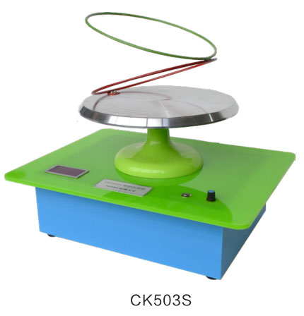 用于演示視覺暫留現(xiàn)象。物體在視網(wǎng)膜上成像一旦外界光刺激消失,像也隨之消失,但視神經(jīng)對(duì)光刺激印象可保留約 0.1 秒時(shí)間,也就是人眼的視覺暫留特性。因此只要先后出現(xiàn)在眼前的兩幅畫面間隔時(shí)間小于 0.1 秒,視神經(jīng)會(huì)把兩幅畫面“疊加”。開啟設(shè)備電源,調(diào)節(jié)變速器,當(dāng)電機(jī)到達(dá)一定轉(zhuǎn)速時(shí),可以看到紅色圓環(huán)在圓盤上無固定點(diǎn)的貼著圓盤跳動(dòng),綠色圓環(huán)無固定點(diǎn)的貼著紅色圓環(huán)在跳動(dòng)。