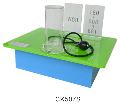 用于演示凸透鏡成像規(guī)律。物體放在焦點(diǎn)之外,在凸透鏡另一側(cè)成倒立的實(shí)像,實(shí)像有縮小、等大、放大三種。物距越小,像距越大,實(shí)像越大。物體放在焦點(diǎn)之內(nèi),在凸透鏡同一側(cè)成正立放大的虛像。物距越大,像距越大,虛像越大。本儀器主要利用凸透鏡成像規(guī)律,當(dāng)圓桶里注入水后,通過圓桶觀看會(huì)發(fā)現(xiàn)面板上原本錯(cuò)誤的等式變?yōu)槌闪⒘恕?/p>